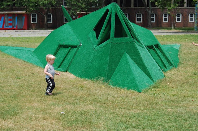Oliver kept climbing all over this sculpture that had "no climbing" signs posted all over it. Can't he read?! I chased after him all the way to the top. Once. |